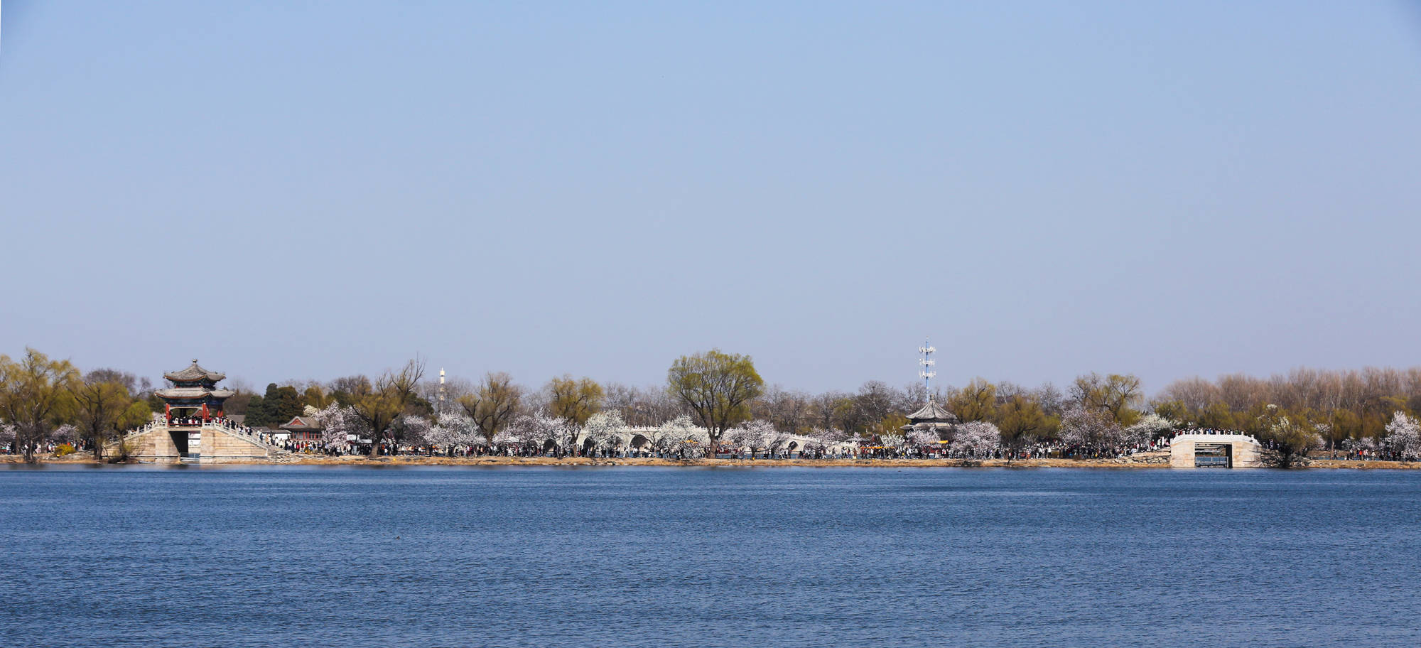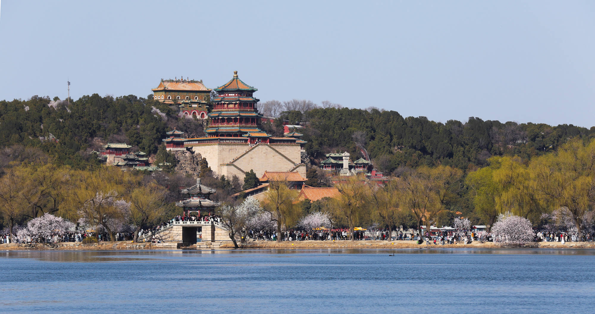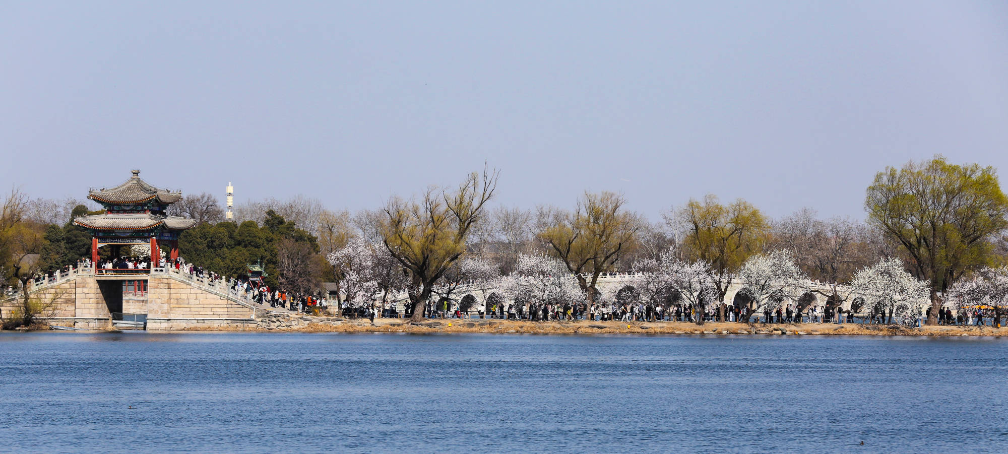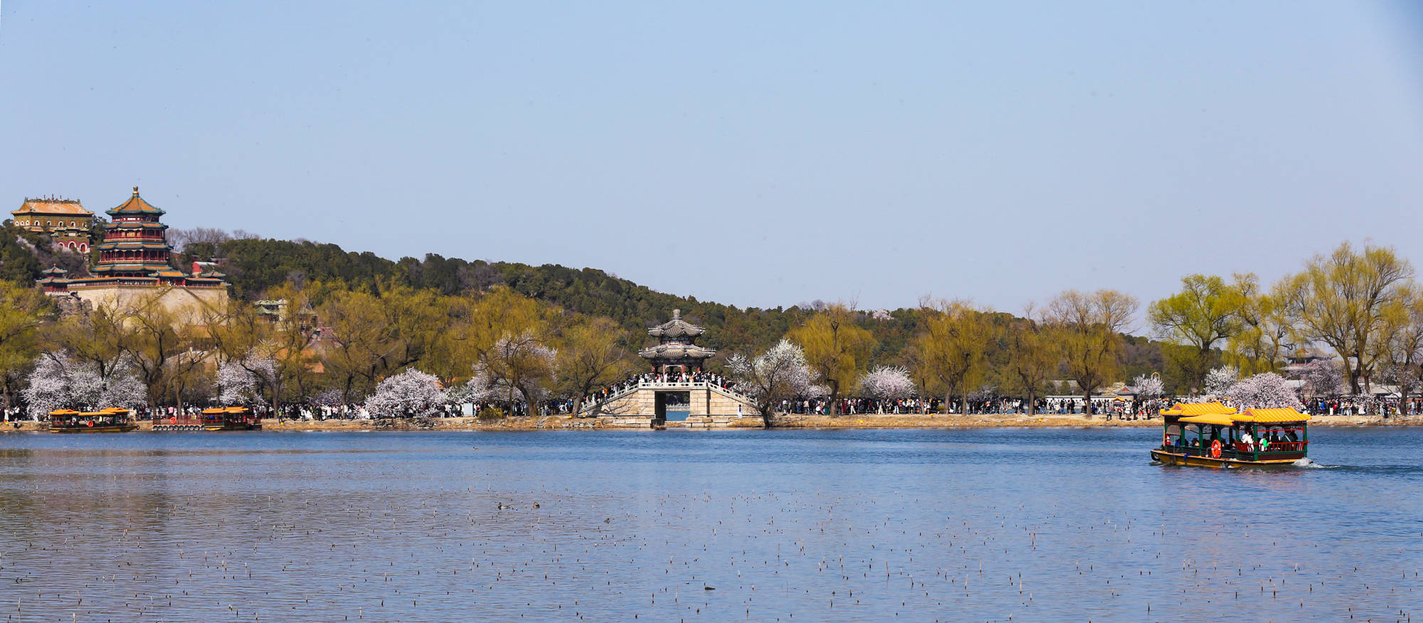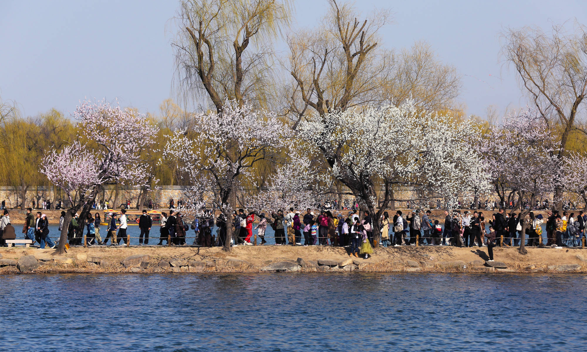 ↑2026年3月22日,人们在北京颐和园赏花踏春。CICPHOTO/沈达 摄